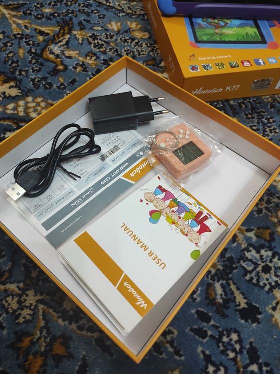 اقلام همراه: شارژر و سیم شارژر،یک ورق برچسپ هدیه،جاسویچی بازی