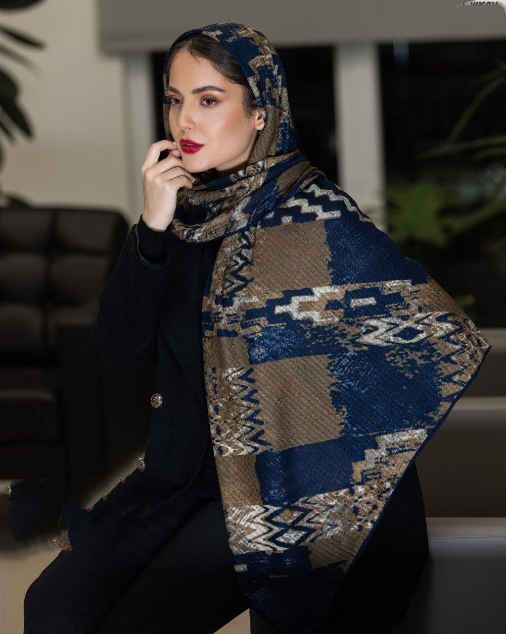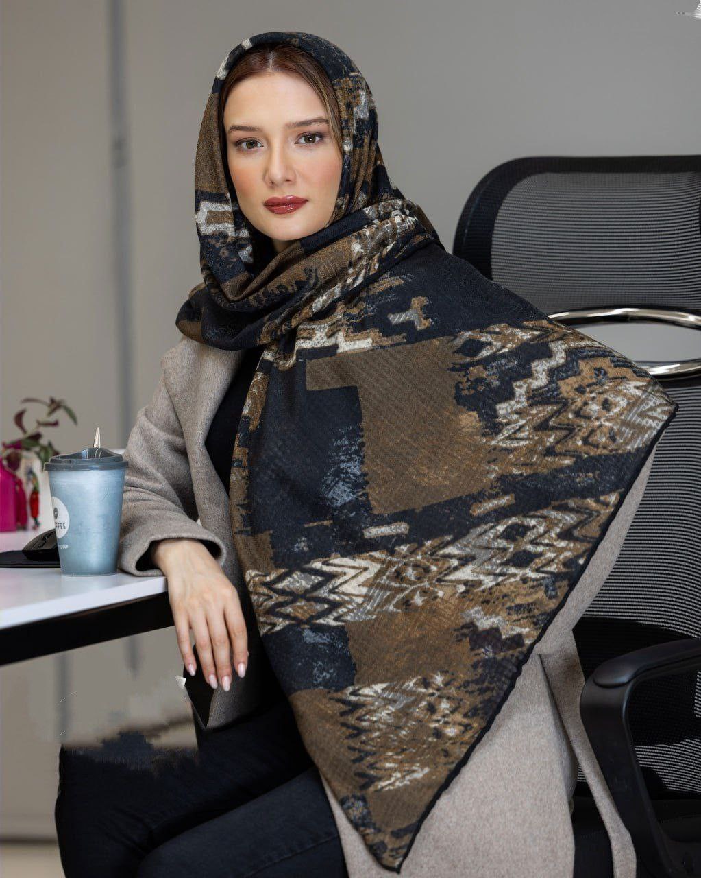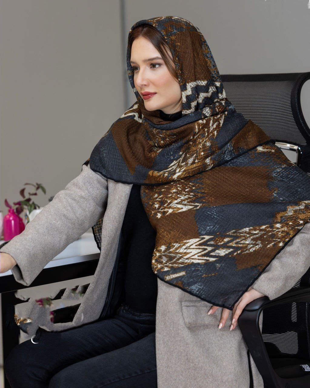 روسری کشمیر پاییزه دور دست دوز دو طرف چاپ